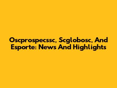 Oscprospecssc, Scglobosc, And Esporte: News And Highlights