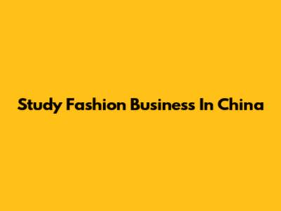 Study Fashion Business In China