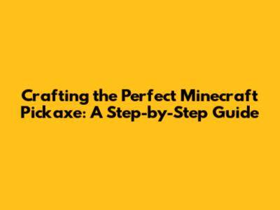 Crafting The Perfect Minecraft Pickaxe: A Step-by-Step Guide