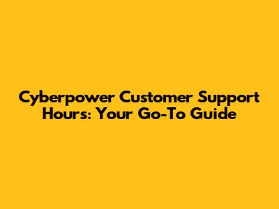 Cyberpower Customer Support Hours: A Comprehensive Guide