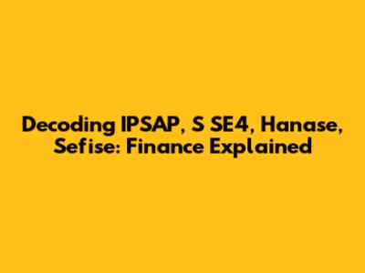 Decoding IPSAP, S SE4, Hanase, Sefise: Finance Explained