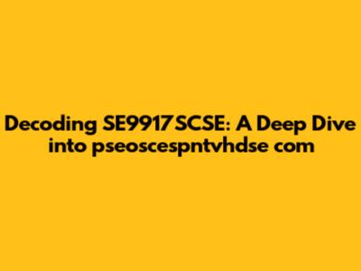 Decoding SE9917SCSE: A Deep Dive Into Pseoscespntvhdse Com