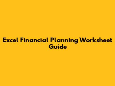 Excel Financial Planning Worksheet Guide