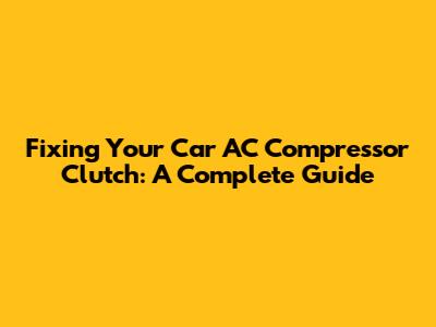 Fixing Your Car AC Compressor Clutch: A Complete Guide