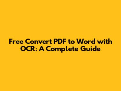 Free Convert PDF To Word With OCR: A Complete Guide