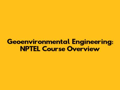 Geoenvironmental Engineering: NPTEL Course Overview