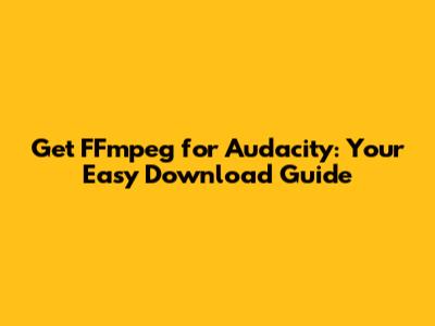 Get FFmpeg For Audacity: Your Easy Download Guide