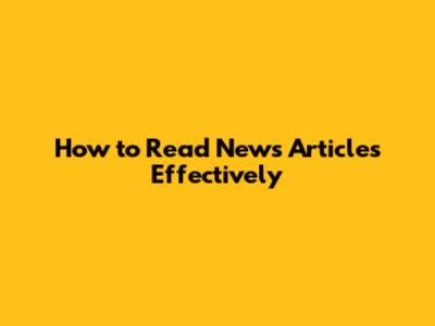 How To Read News Articles Effectively