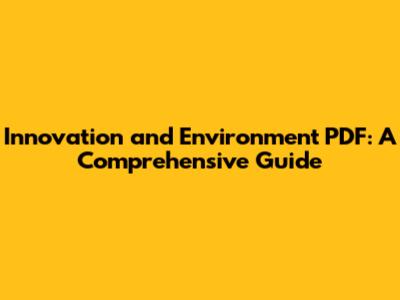 Innovation And Environment PDF: A Comprehensive Guide
