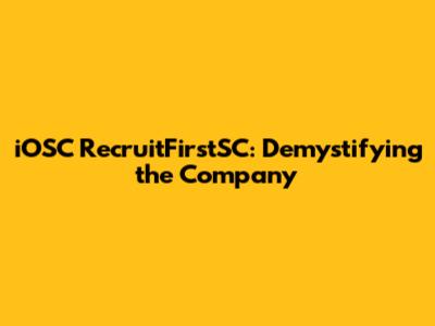 IOSC RecruitFirstSC: Everything You Need To Know