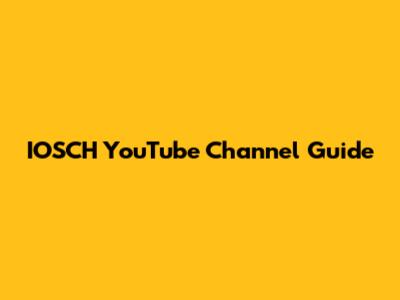IOSCH YouTube Channel Guide