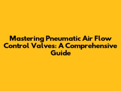 Mastering Pneumatic Air Flow Control Valves: A Comprehensive Guide