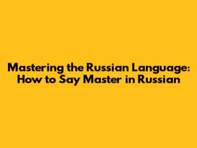 Mastering The Russian Language: How To Say 'Master' In Russian