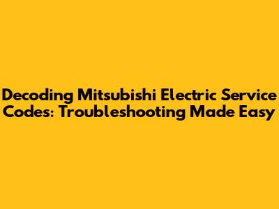 Hey everyone! If you're dealing with a Mitsubishi Electric appliance and seeing some confusing codes pop up, don't sweat it. Today, we're diving deep into the world of Mitsubishi Electric service codes. Think of these codes as the appliance's way of telling you what's going on under the hood. Sometimes, it's a simple fix, and other times, it might signal a need for a professional touch. Understanding these codes can save you time, money, and a whole lot of frustration. We'll break down what common codes mean for various Mitsubishi Electric products, from air conditioners to maybe even other appliances they offer, and give you some pointers on how to tackle them. So, grab a beverage, get comfy, and let's get these codes decoded together!