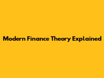 Modern Finance Theory Explained
