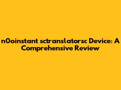 N0oinstant Sctranslatorsc Device: A Comprehensive Review