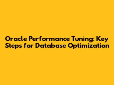 Oracle Performance Tuning: Key Steps For Database Optimization