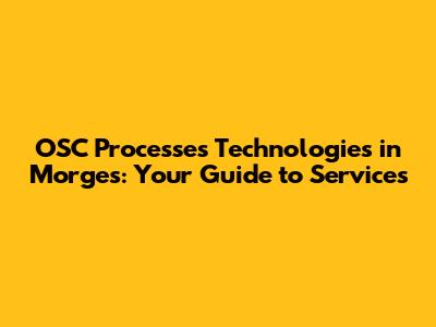 OSC Processes Technologies: Your Guide To Morges Services