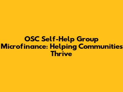 OSC Self-Help Group Microfinance: Helping Communities Thrive