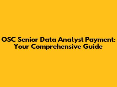 OSC Senior Data Analyst Salary & Compensation Guide