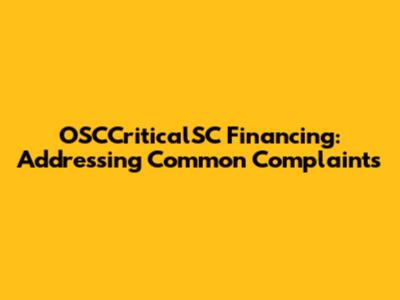 OSCCriticalSC Financing: Addressing Common Complaints