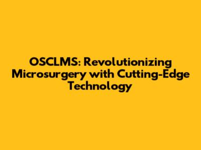 OSCLMS: Revolutionizing Microsurgery With Cutting-Edge Technology