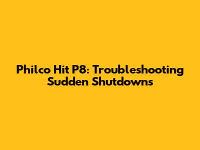 Philco Hit P8: Troubleshooting Sudden Shutdowns