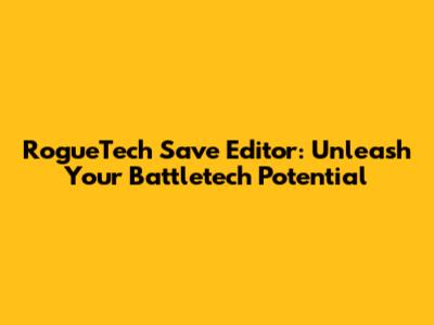 RogueTech Save Editor: Unleash Your Battletech Potential