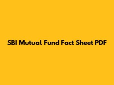 SBI Mutual Fund Fact Sheet: Download PDF Now