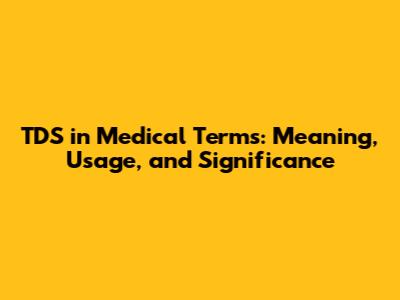 TDS In Medical Terms: Meaning, Usage, And Significance