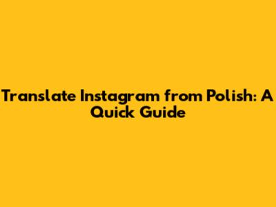 Translate Instagram From Polish: A Quick Guide