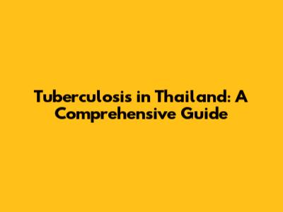 Tuberculosis In Thailand: A Comprehensive Guide