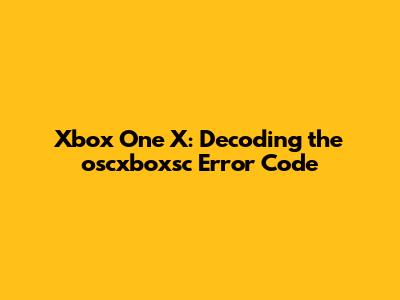 Xbox One X: Decoding The 'oscxboxsc' Error Code